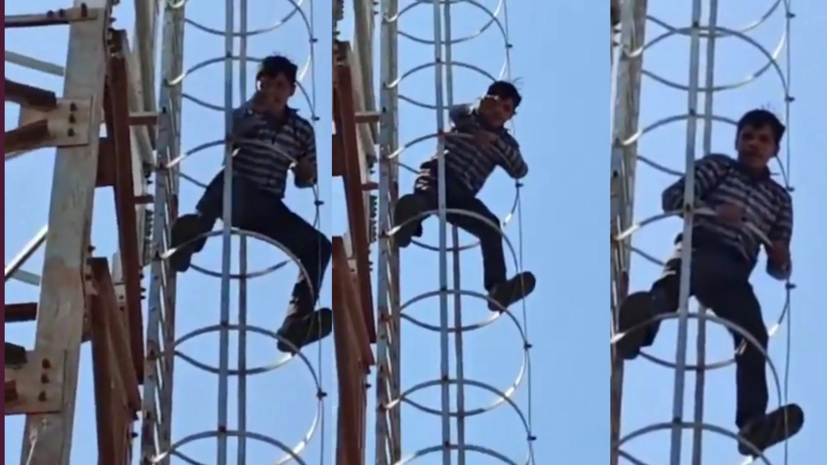 BSNL टॉवर पर चढ़कर किया महंत के खिलाफ प्रदर्शन